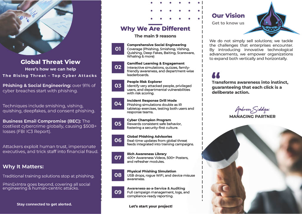 Social Engineering Coverage: Phishing | Smishing | Vishing | Quishing | Impersonation | Quid Pro Quo | Whaling | Deep Fakes | Pretexting | Scareware | Click Fix | Consent Phishing | baiting | Physical Simulations | BiTB | BEC | Cyber Campion Program | Gamification | Social media Impersonation etc.